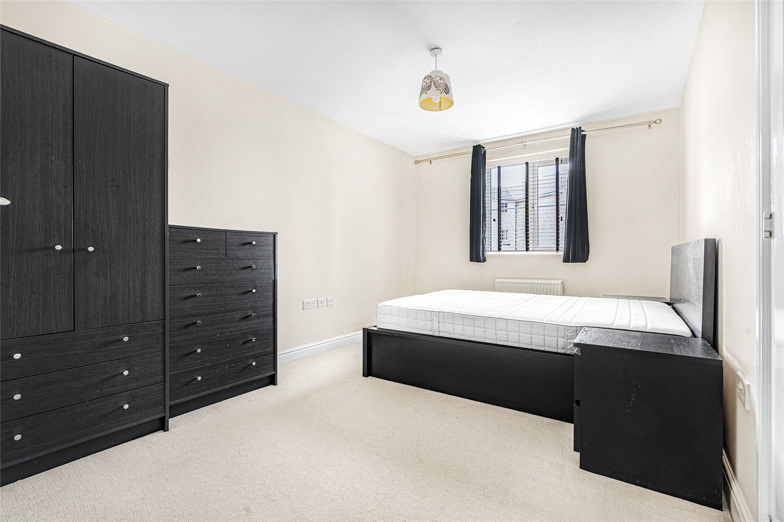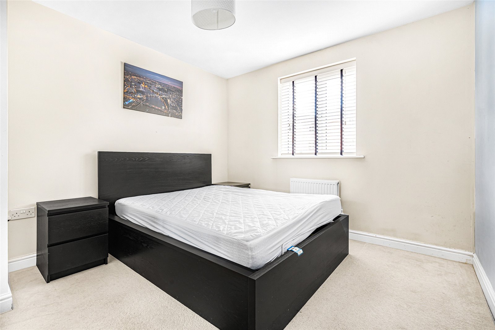 Both bedrooms are generously proportioned, with the principal bedroom featuring built-in storage and a private ensuite shower room. A contemporary family bathroom with modern fixtures and fittings adds to the apartment’s appeal, offering practicality without compromising on style.