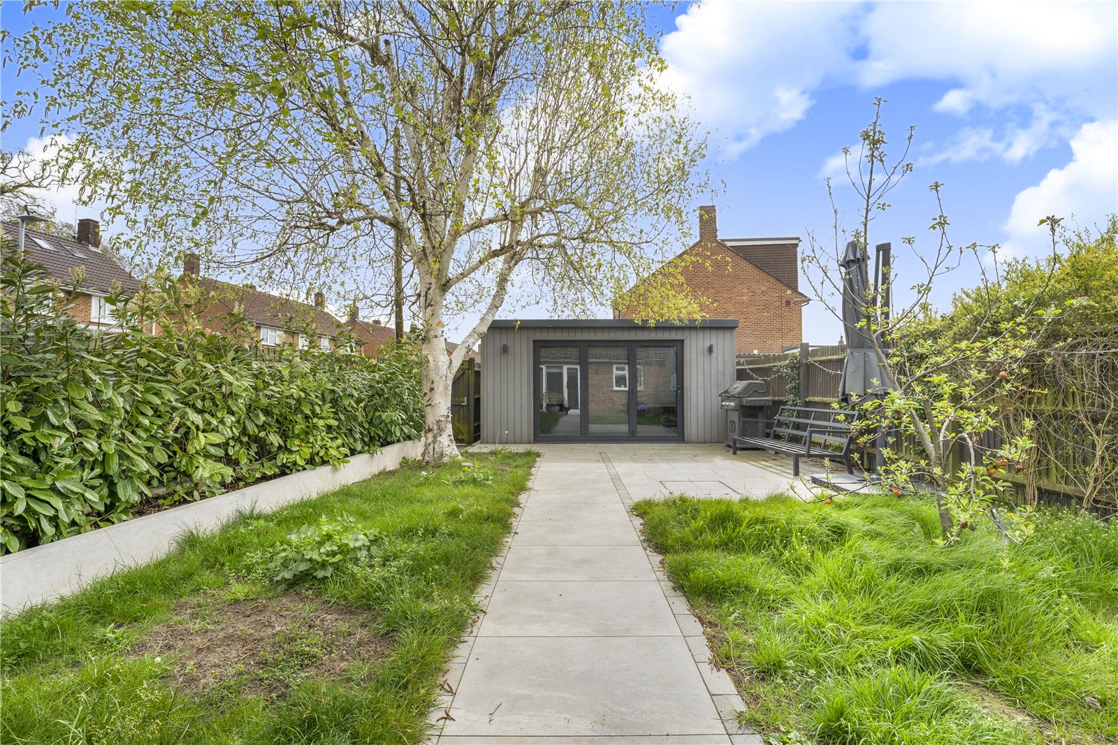 Outside, the beautifully maintained rear garden provides a wonderful space to relax, complete with a versatile Garden Room – perfect for a home office, gym or hobby space.