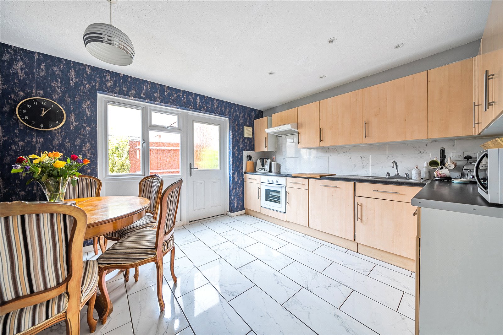 You'll find a generously sized living room with a designated study area, as well as a spacious kitchen/diner with direct access to the garden. Upstairs, the first floor comprises three well-proportioned bedrooms along with a family bathroom and a separate WC.
