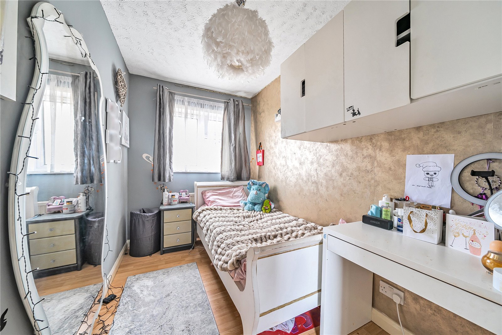 Outside, the rear garden requires minimal upkeep, while at the front, there's access to non-designated off-road parking spaces. This property is situated close to reputable schools with excellent Ofsted reports, namely Albans Wood and Parmiter’s.