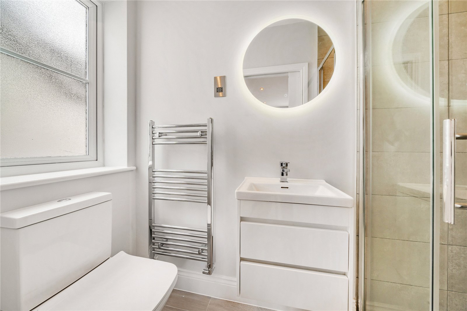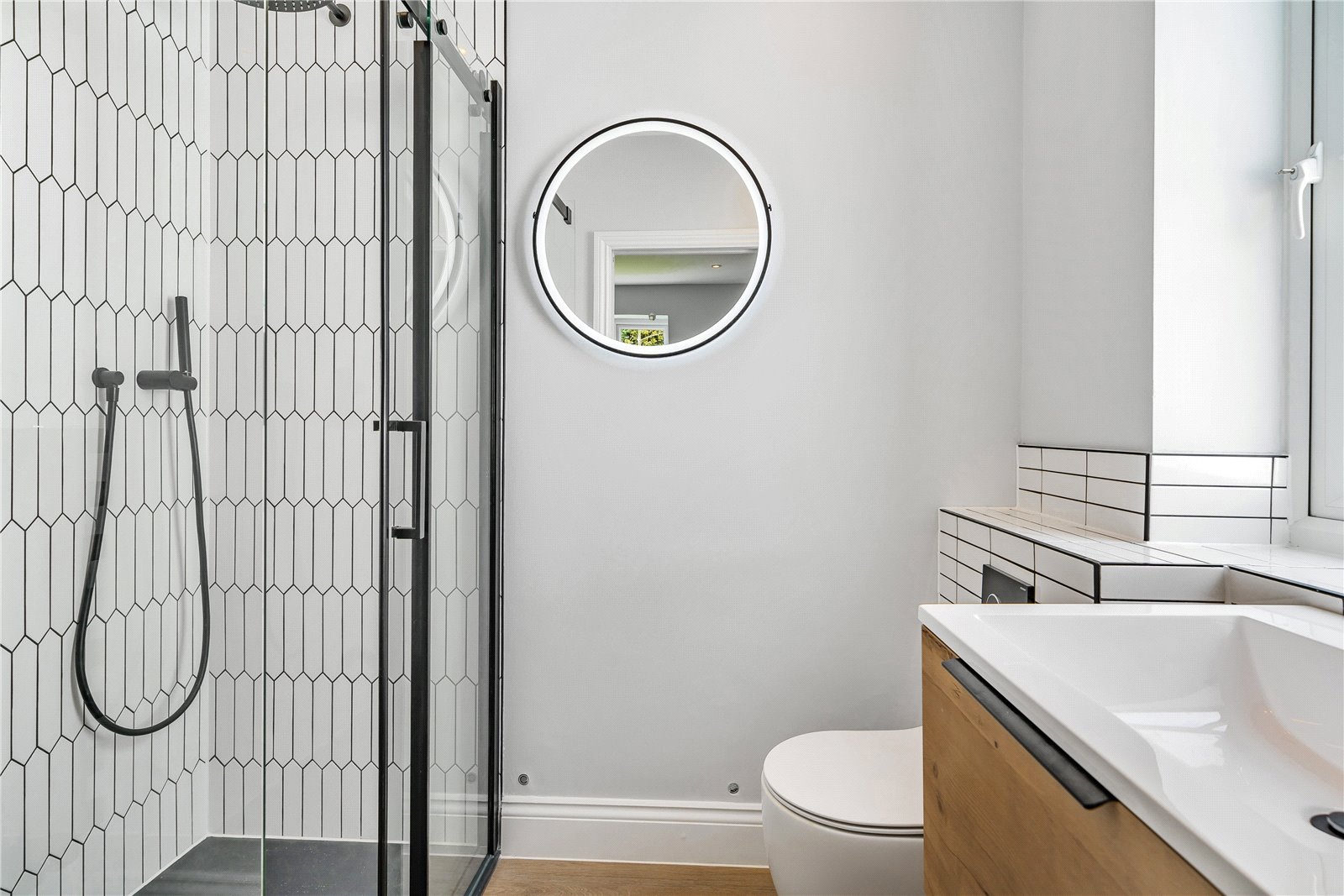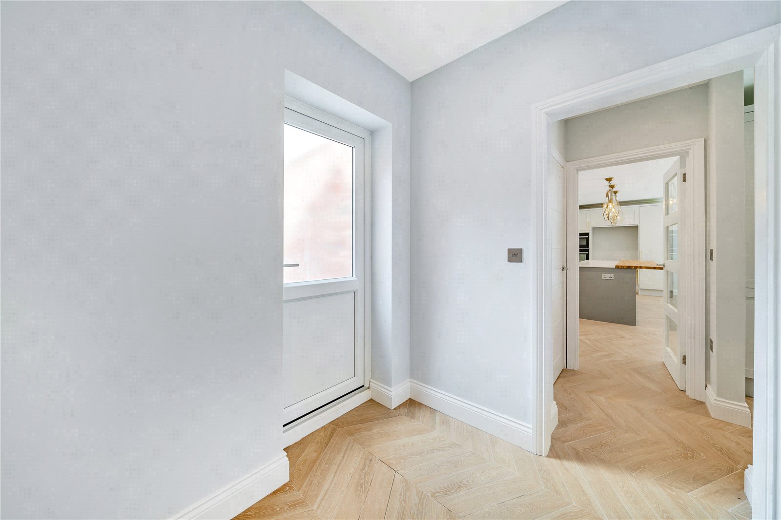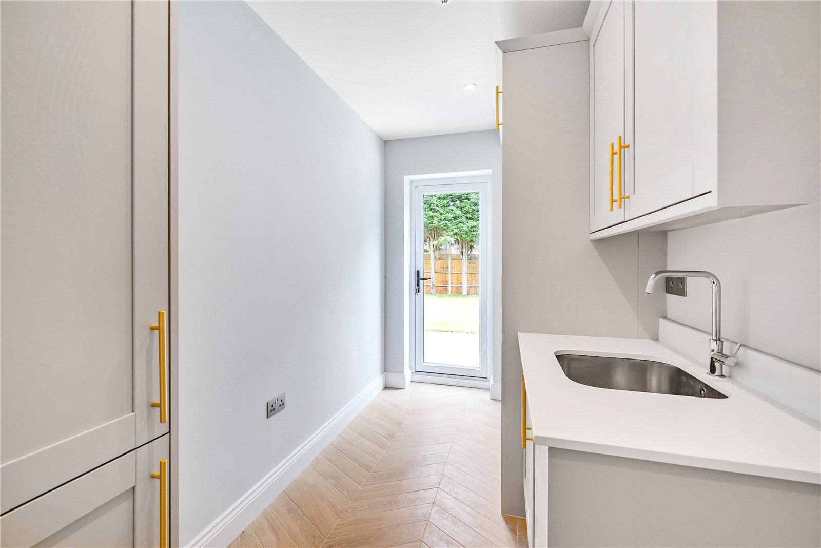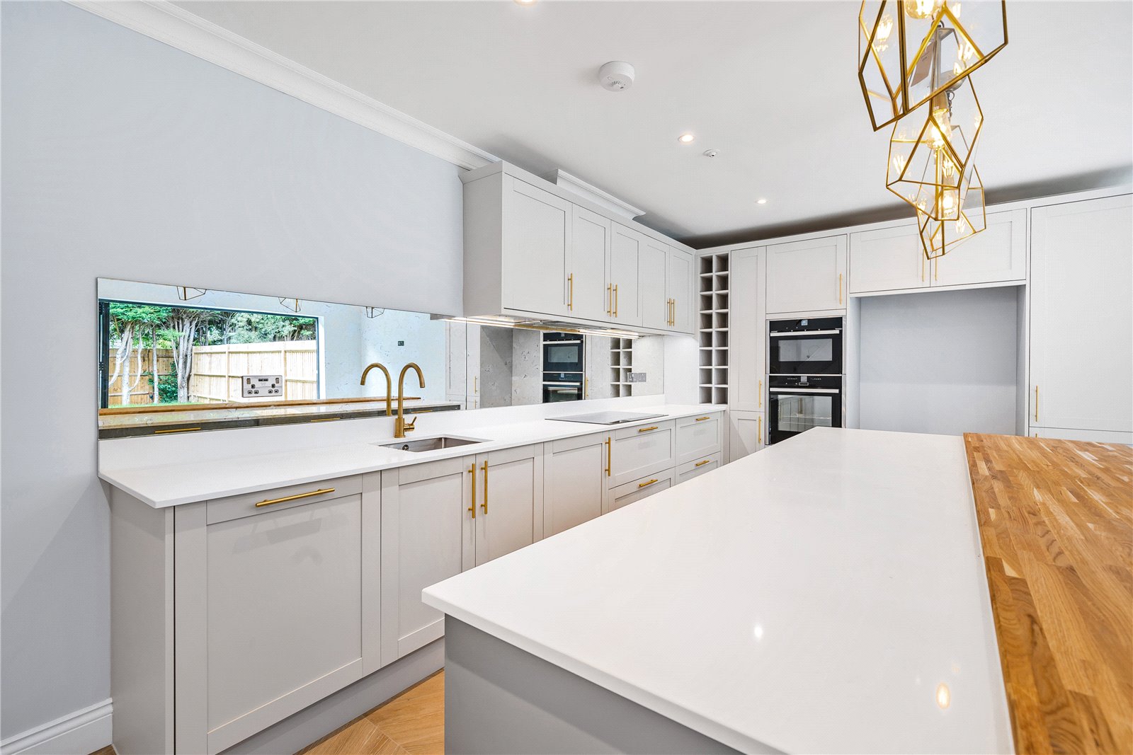 The ground floor has a fully insulated water fed underfloor heating system being adjustable to the chic wood effect durable tile flooring. The kitchen has been fitted with a high spec to include Neff appliances including an induction hob, oven, microwave and dishwasher accented by the antique mirror splash backs and further benefits from bi-folding doors to the rear garden.