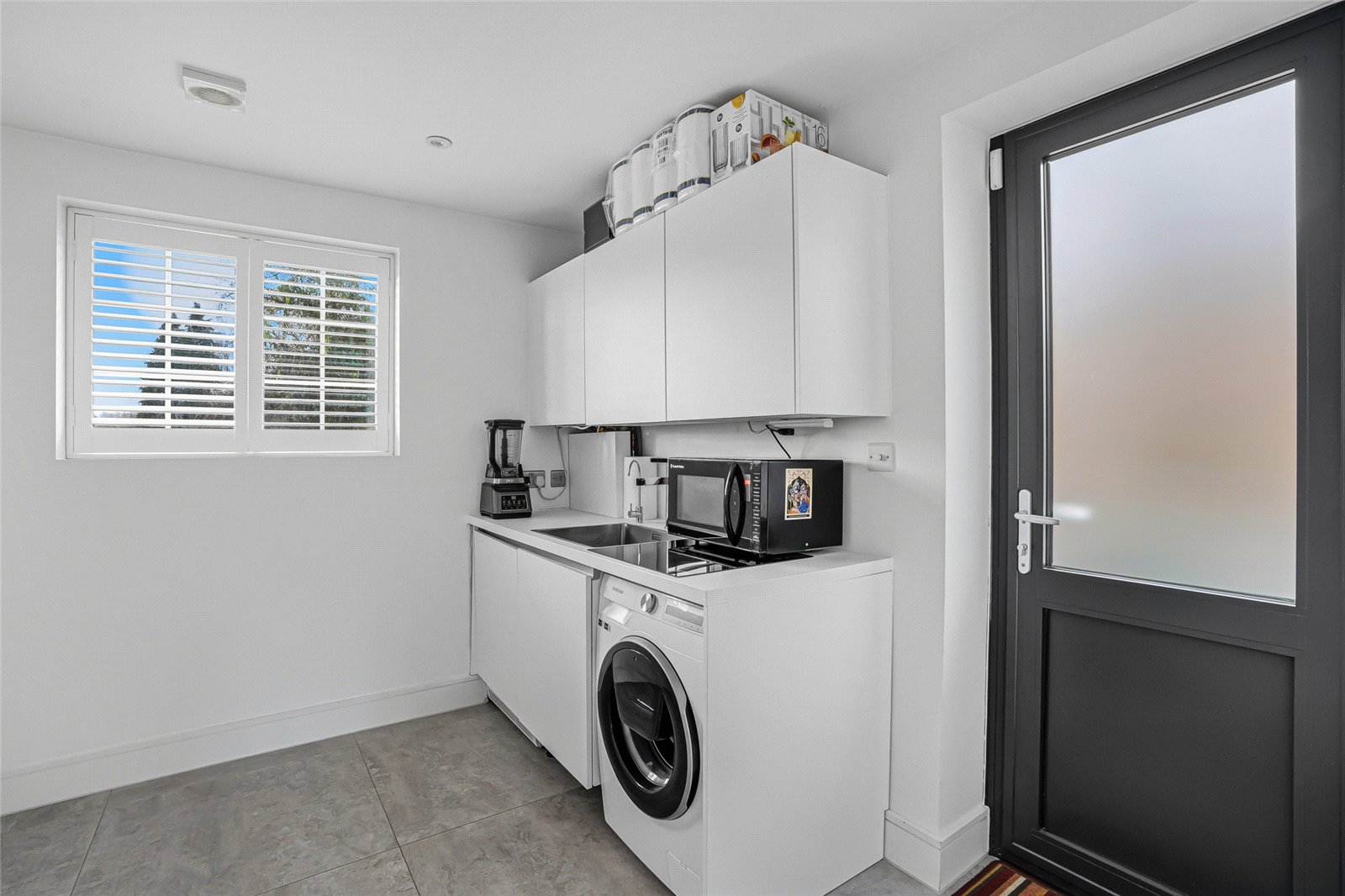 Just off the kitchen is a well-appointed laundry room with further fitted cabinetry and a door providing side access to the property.