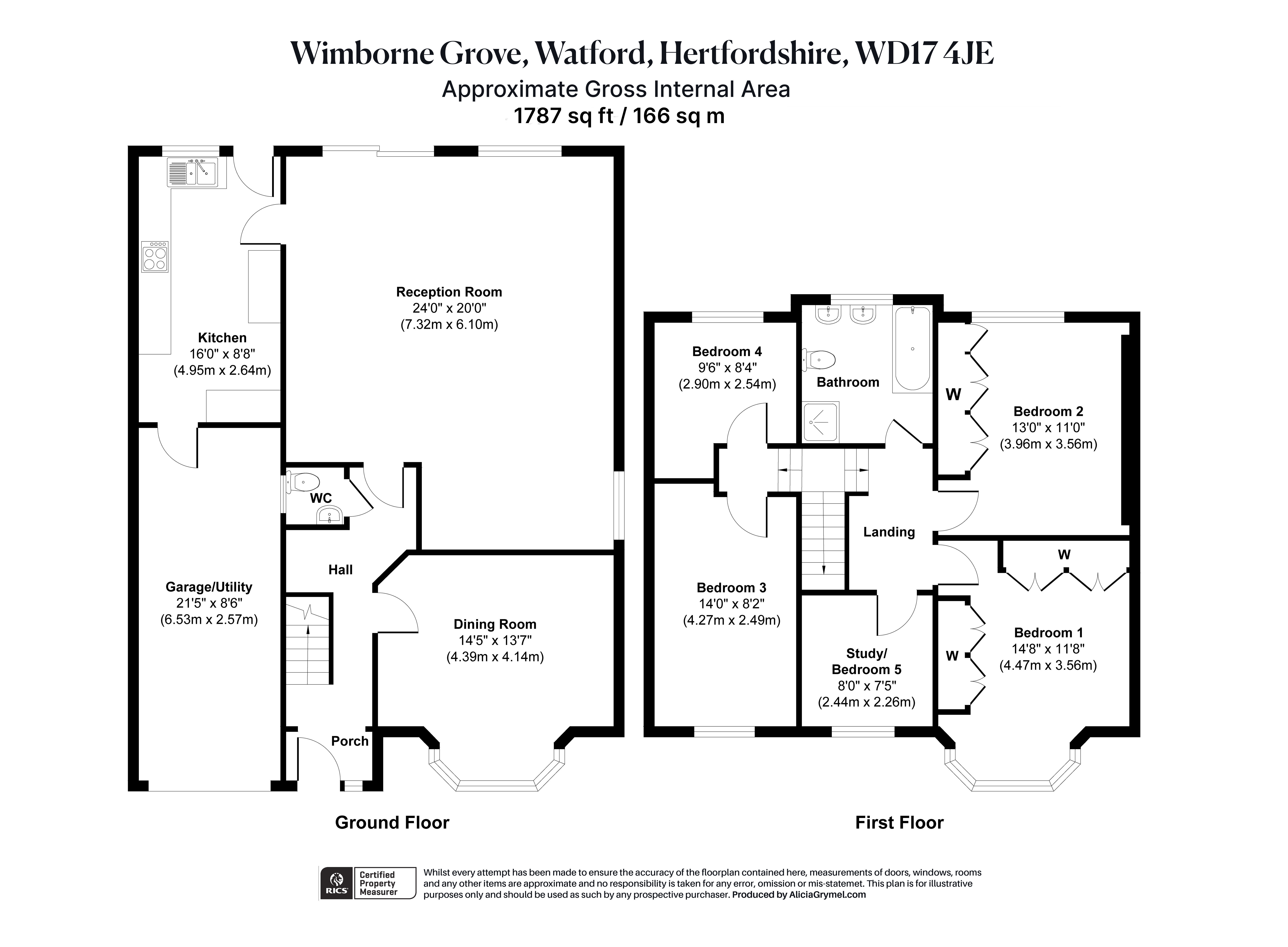 - Approximately – 1787 Sq Ft / 166 Sq M