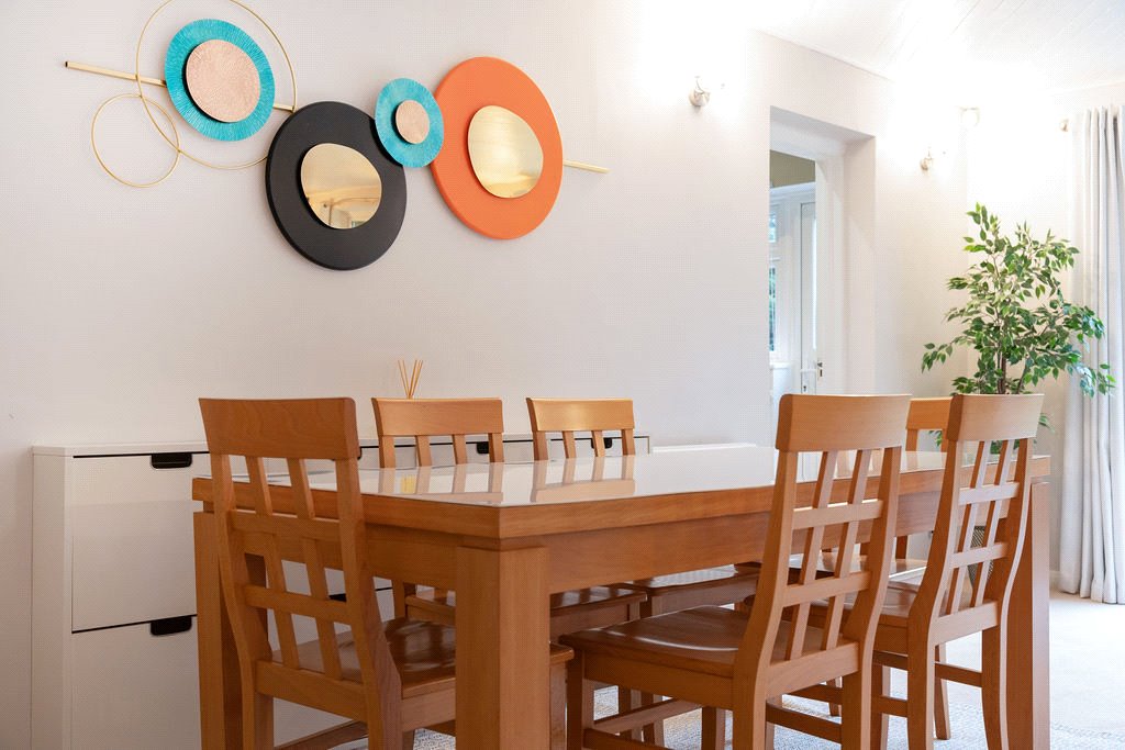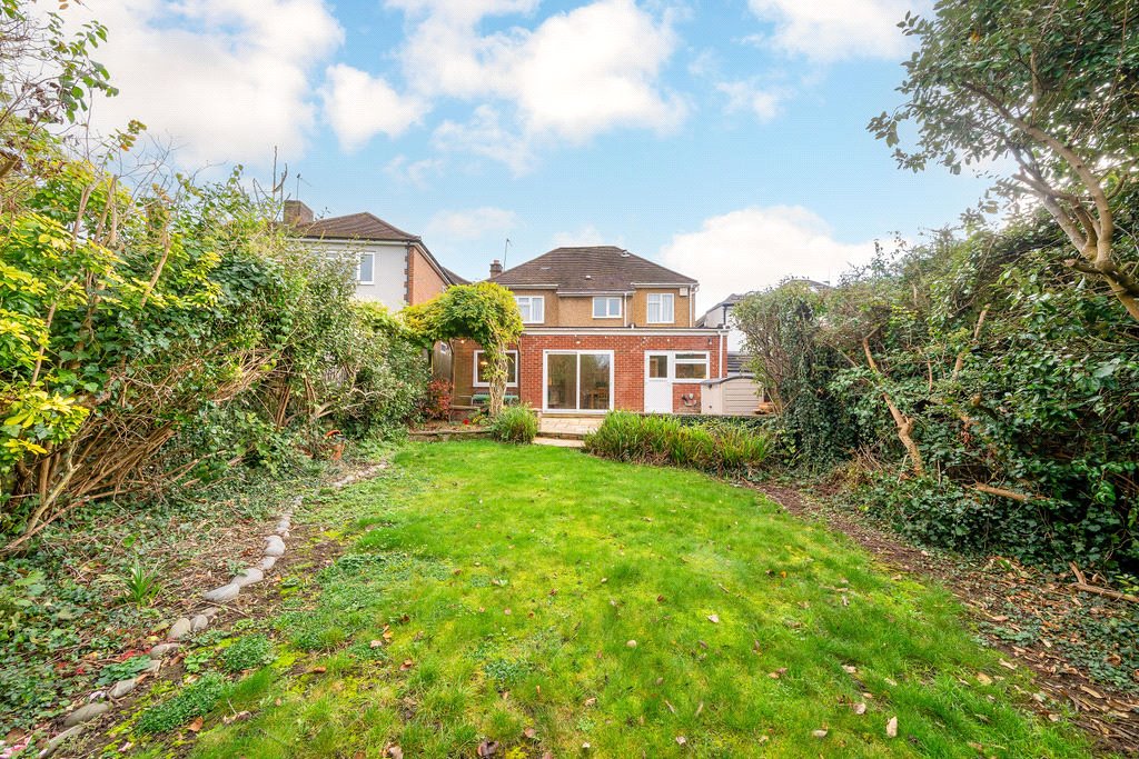 Practicality meets style with a downstairs WC, an integral garage with utility space, and a horseshoe driveway that can easily accommodate several vehicles. The mature, landscaped rear garden offers both privacy and charm, with a paved patio, lush lawn, and a pergola covered in wisteria, ideal for outdoor entertaining.