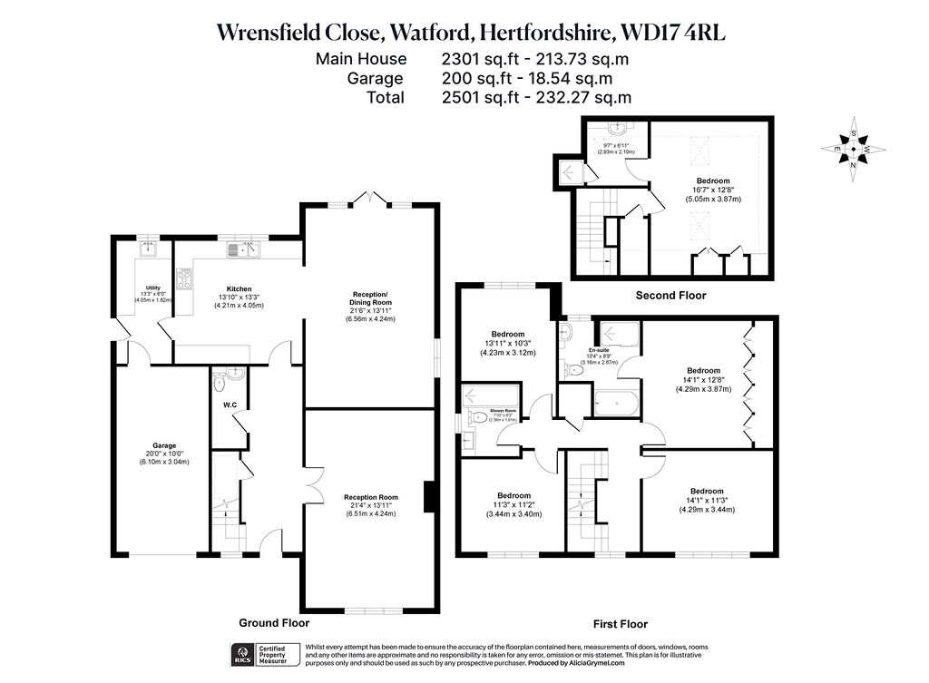 Set on the desirable Wrensfield Close, this modern home was constructed in 2012 and offers approximately 2501 sq ft of thoughtfully designed accommodation, including an integral garage. From the moment you enter the welcoming hallway, the sense of space and practicality is clear. A guest cloakroom adds convenience, while double doors lead into a bright front reception room, perfect for relaxing or entertaining.<br><br>To the rear, the open-plan kitchen flows seamlessly into a generous dining and family area, bathed in natural light with double doors opening onto the beautifully maintained, south facing garden – an ideal layout for modern family life. The kitchen is complemented by a separate utility room with side access and internal entry to the garage.<br><br>A standout feature of the home is the underfloor heating which runs throughout both the ground and first floors, providing comfortable warmth and energy efficiency. The inviting reception room also features a functional fireplace with a log burner – perfect for cosy evenings.<br><br>Across the upper floors, five well-proportioned bedrooms provide generous accommodation for family and guests. On the first floor, the principal suite features a beautifully updated en-suite shower room (refurbished in 2023), alongside two further bedrooms and a sleek family bathroom. A fourth bedroom is also located on this floor, offering flexibility for use as a home office or nursery. The top floor hosts a spacious fifth bedroom complete with its own private en-suite, creating a perfect retreat for guests, older children, or multi-generational living.<br><br>The south facing rear garden is a tranquil and private space with a generous patio, manicured lawn, mature trees, and thoughtful landscaping. Discreet uplighters at the base of the trees provide ambient evening lighting, and external power makes it easy to entertain outdoors or add lighting features.<br><br>To the front, there is ample off-street parking and access to the integral garage. The property also benefits from a secure, well-maintained private service road with an annual charge of £1,800, covering gated access, communal greenery, and upkeep.<br><br>Ideally positioned near the lush grounds of Cheslyn Gardens and just over a mile from Watford Junction Station, the home offers an outstanding combination of quiet residential charm and convenient urban access. Excellent schools, shops, and leisure facilities are all close at hand, making this the perfect family home in a prime Watford location. | ||||||||||||||||||||||||||||
