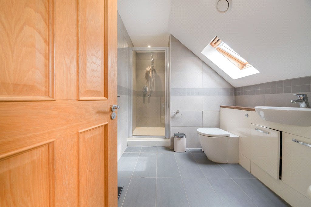 Across the upper floors, five well-proportioned bedrooms provide generous accommodation for family and guests. On the first floor, the principal suite features a beautifully updated en-suite shower room (refurbished in 2023), alongside two further bedrooms and a sleek family bathroom. A fourth bedroom is also located on this floor, offering flexibility for use as a home office or nursery. The top floor hosts a spacious fifth bedroom complete with its own private en-suite, creating a perfect retreat for guests, older children, or multi-generational living.
