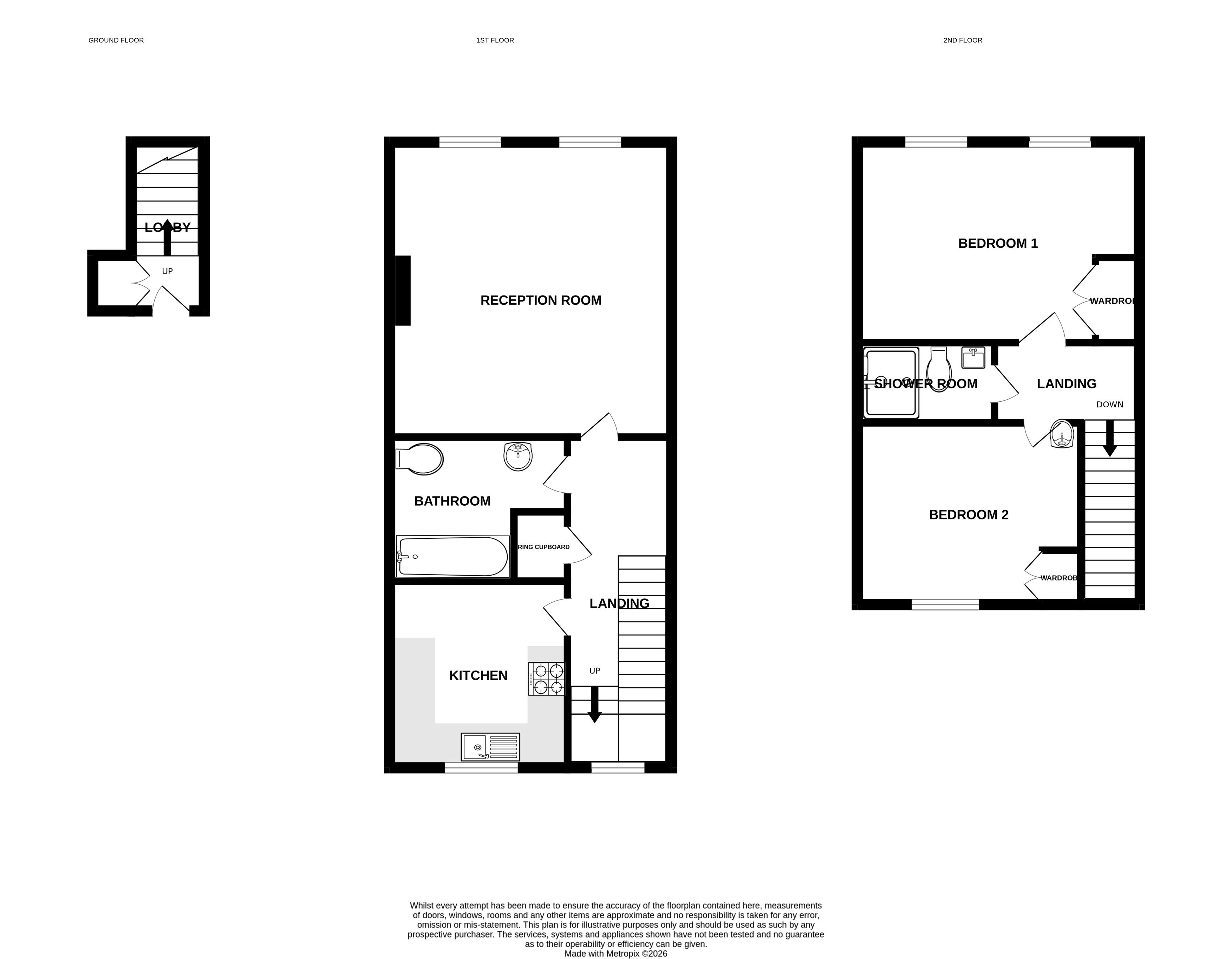 Entered via a private stairway, the first floor presents a bright and spacious reception room, a sleek family bathroom, and a fitted kitchen. <br><br>The second floor comprises two well-proportioned double bedrooms with fitted wardrobes and a modern shower room, completing this thoughtfully arranged duplex home. <br><br>Council Tax - £2,343.00 (Band D) | |||||||||