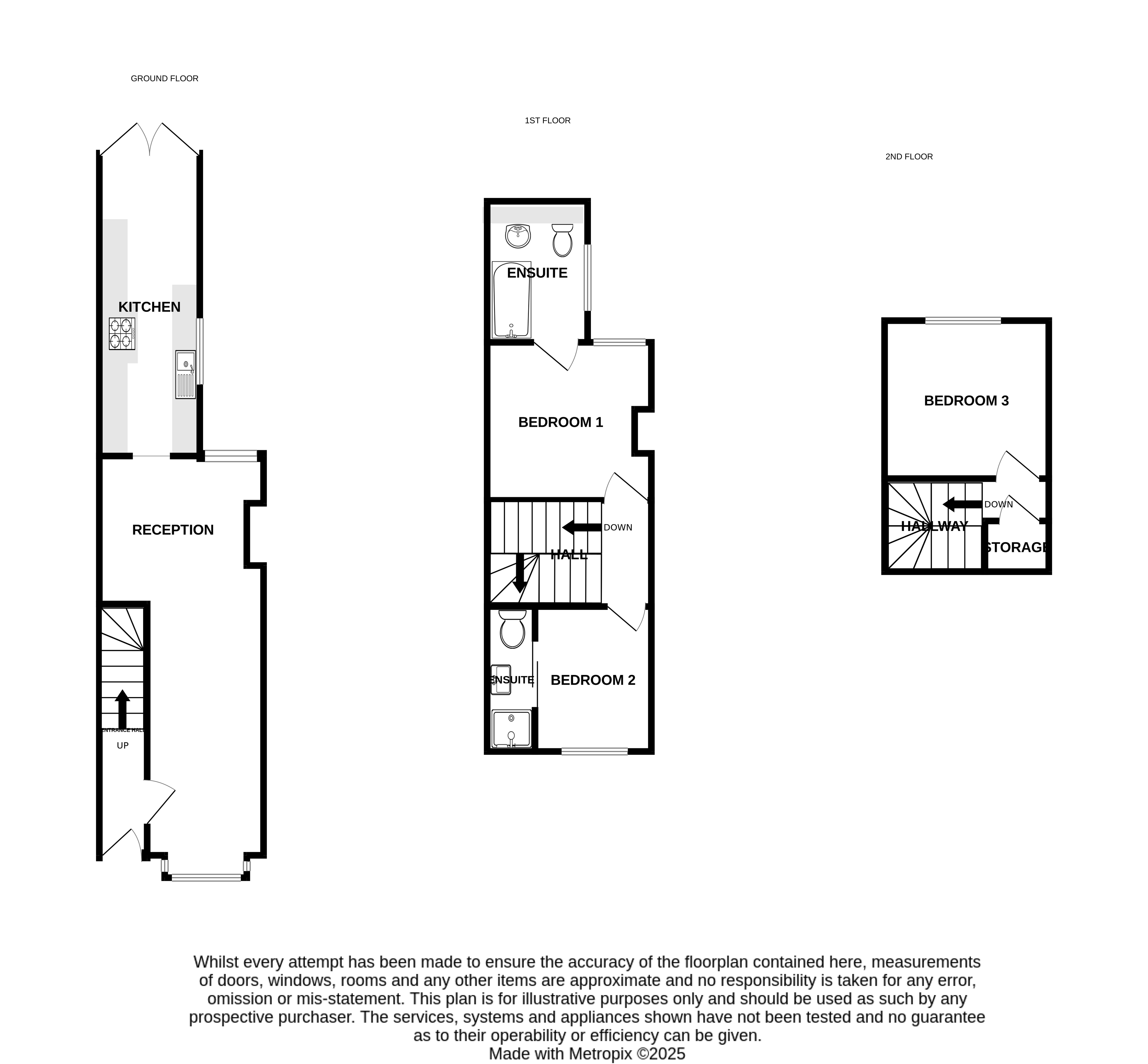 Moving upstairs, the first floor boasts two well-proportioned bedrooms, each accompanied by its own bathroom, providing convenience and privacy for residents or guests. On the second floor, you'll find a spacious third double bedroom, offering a bright and airy retreat.
