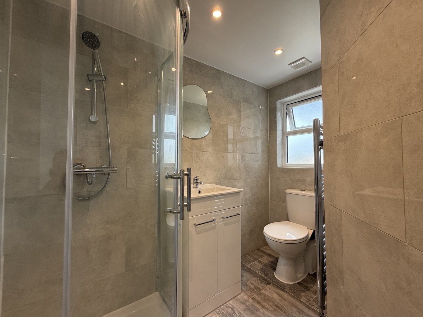 The first floor hosts two well-proportioned double bedrooms and a shower room, while the second floor features two additional bedrooms and a further stylish shower room.